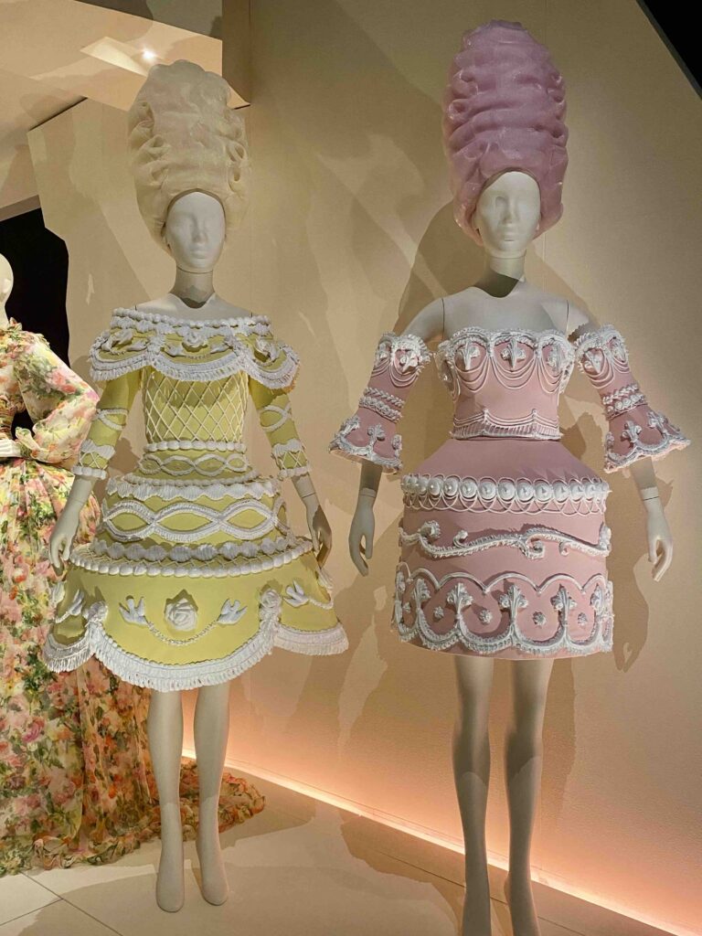 Cette exhibition a pour thème le style Marie-Antoinette. Le style dans les vêtements, mais aussi dans les arts décoratifs. Il y a donc de quoi faire tant le sujet est foisonnant ! La reine de France avait en effet un goût prononcé pour l’esthétique et a lancé de nombreuses modes, j’en parle plus en détail dans mon article sur l’influence de Marie-Antoinette si le sujet vous intéresse.